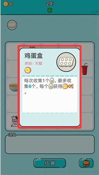 3、鸡蛋盒,每次收集一个鸡蛋,最后可以收集六个,每收集一个就能获得一个金币。