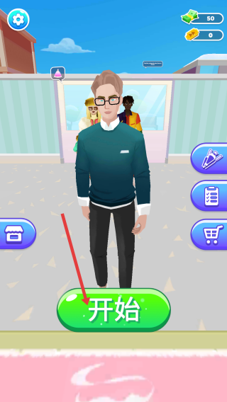 1、开局选择:点击“开始”,进入游戏,可进行角色(或顾客)相关操作,准备制作内容。
