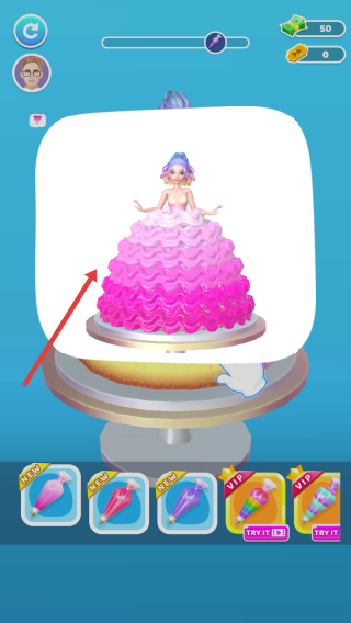 2、目标预览:查看目标成品(如粉色渐变蛋糕,带人偶装饰),明确制作样式。