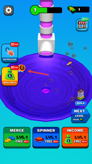 2、资源增益:点击“MULTIPLY”等功能,触发资源翻倍、自动点击等效果,提升资源获取效率。