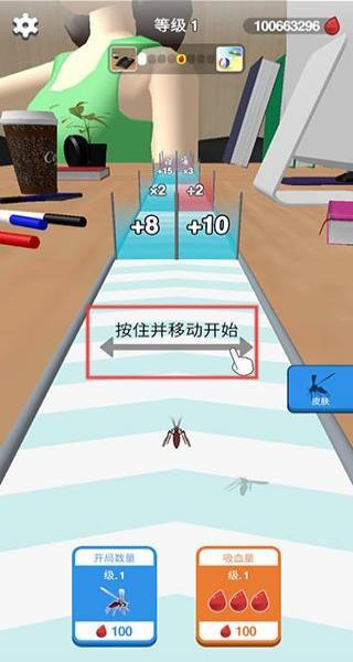3、皮肤能力解锁:通过闯关收获的金币可解锁蚊群新皮肤,或升级蚊群的移动速度、抗伤害能力等,提升闯关效率与趣味性。
