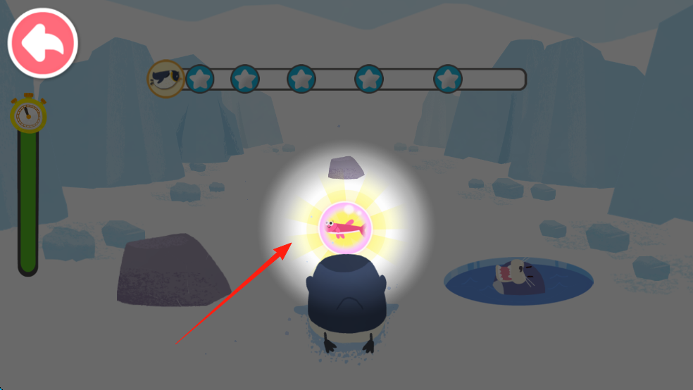 3、引导企鹅,移动拾取发光鱼,注意时间,避开危险,达成收集目标。