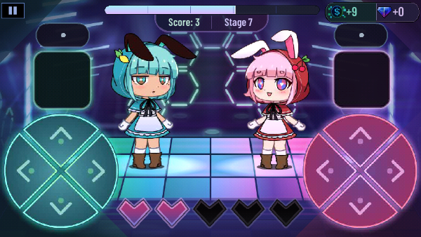 3、在这个游戏里她们会进行舞蹈动作,而你要记住她们的舞蹈动作,然后快速输入,否则你将失去一条生命。