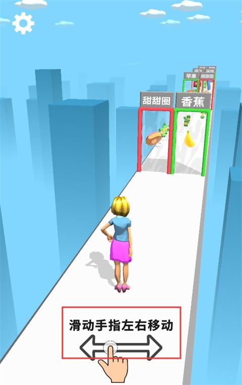 2、滑动屏幕控制角色跳跃,下滑躲避障碍,点击屏幕两侧切换跑道,收集沿途金币与保养品道具,避开灰色衰老障碍物。