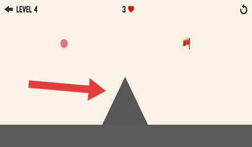 2、Level4中,操控小球,按箭头方向,越过灰色三角形障碍,精准落洞,保留3颗心(生命值)。