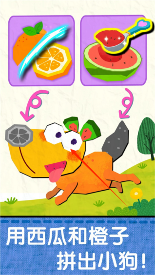 2、手指操作简单拼贴:直接用手指在手机屏幕上操作,将不同素材拖曳拼贴,如用柠檬片做小狗眼睛、西瓜拼耳朵,通过简单触摸完成作品,提升手眼协调能力。