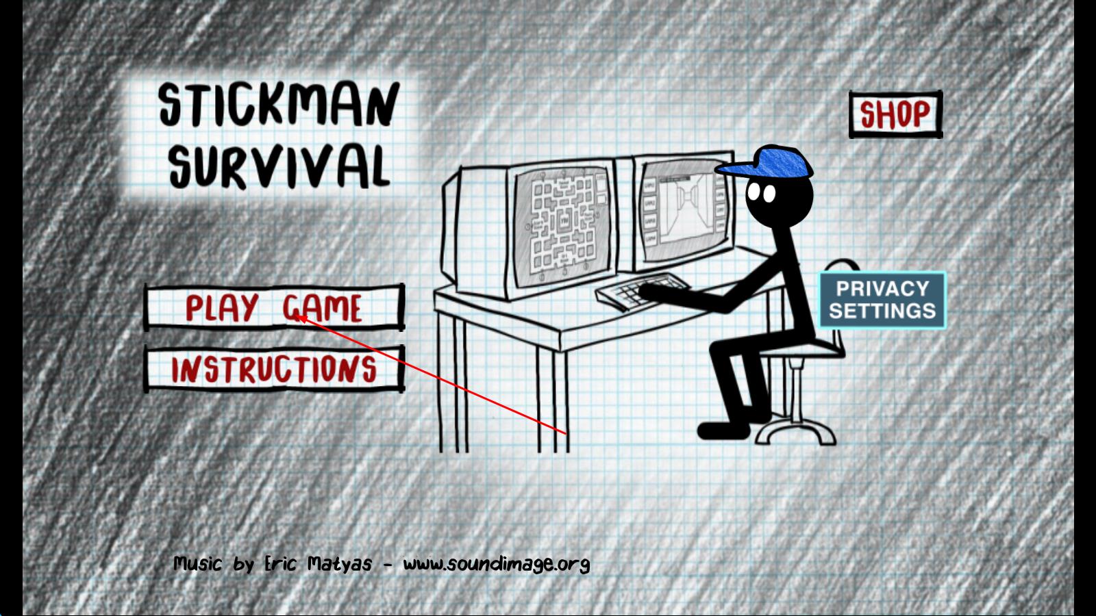 1、进入游戏后选择关卡,通过左侧虚拟摇杆控制火柴人移动,初次探索疯人院环境,熟悉安全区域与监控位置。