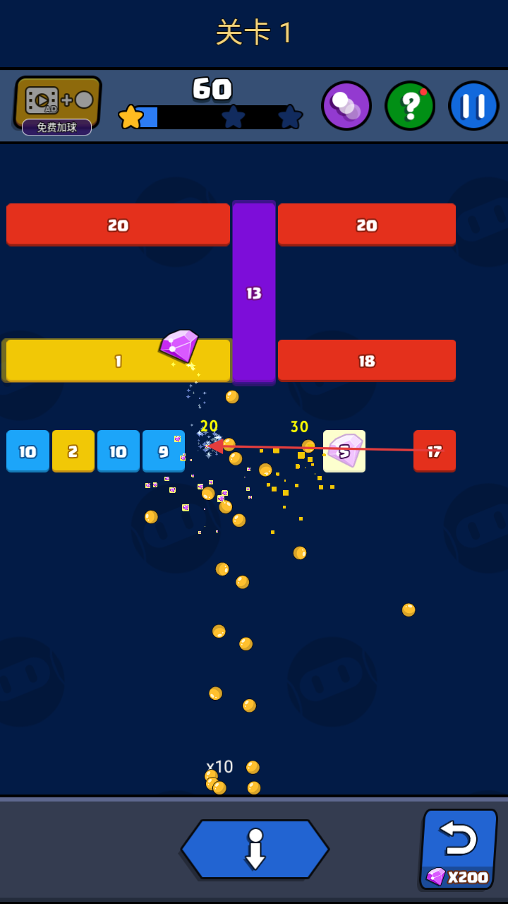 2、金币提升威力清除:使用金币提升攻击威力,增加子弹数量并快速清除砖块,合理分配金币升级属性,可在高难度关卡中高效通关,感受畅快消除体验。