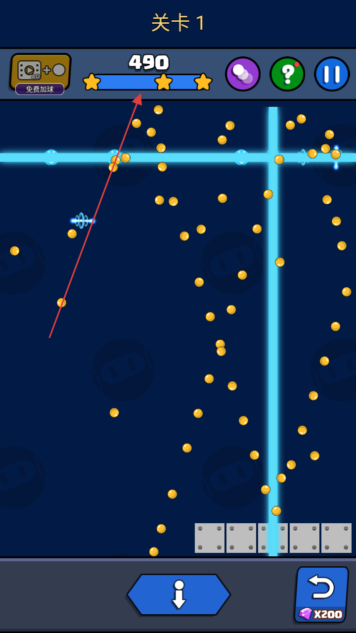 3、关注上方分数进度,让弹球不断弹射、碰撞,努力达成三星目标,获取关卡奖励。