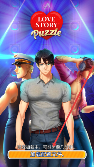 1、等待【LOVE-STORY-PUZZLE】加载完成,进入游戏,体验恋爱解谜剧情,与男性角色互动。