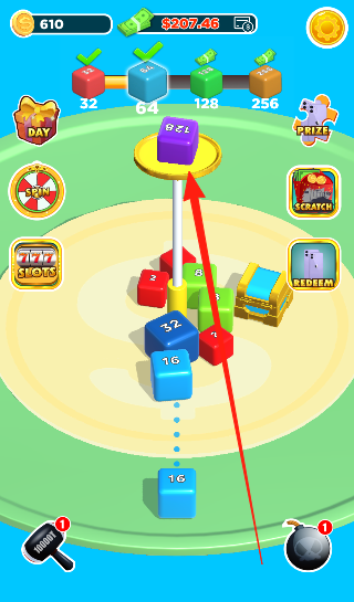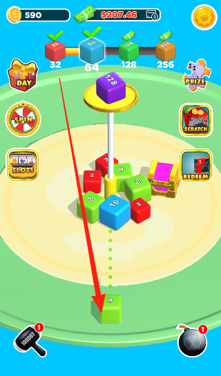 1、基础操作体系:滑动屏幕控制方块移动方向,点击屏幕加速合并过程,双指缩放调整视角,通过组合操作完成复杂数字合成任务,操作简单直观,让玩家专注策略规划。