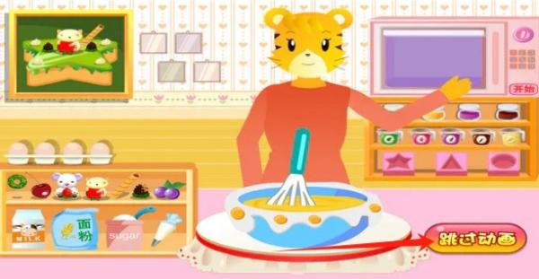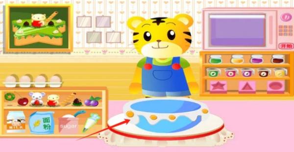 1、进入巧虎甜品店,孩子们操控可爱的巧虎,在温馨明亮的甜品店内,着手准备制作第一款草莓小蛋糕。