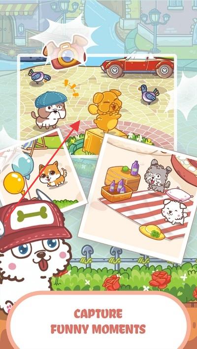 3、捕捉狗狗有趣瞬间(野餐、玩耍画面),积累互动,解锁新场景、装扮,持续养成。