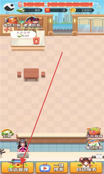 1、微信登录进入游戏,通过“饭店管理”功能,升级店铺、配置设施。