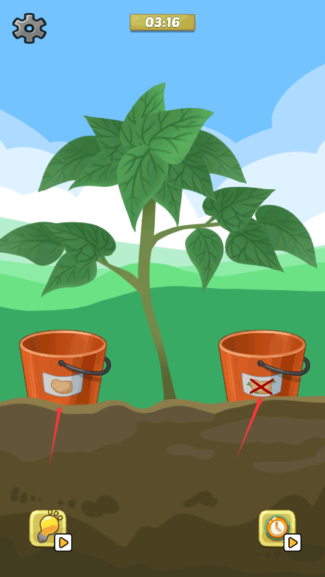 2、找到相同的图案的食材,装进桶里。
