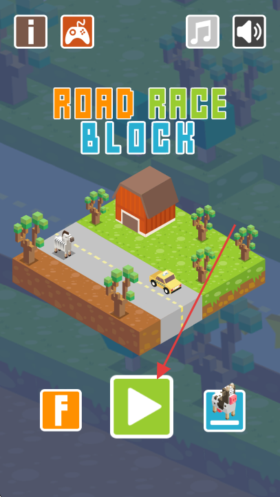 1、点击界面中间绿色播放按钮,开启【Road Race Block】游戏。