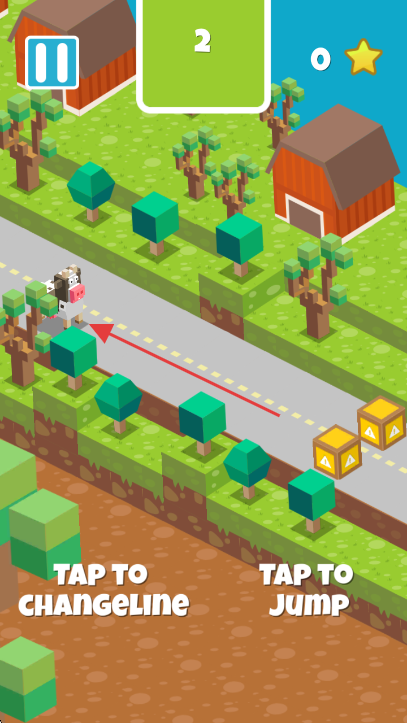 2、操控奶牛,通过【TAP TO CHANGELINE】换道、【TAP TO JUMP】跳跃,躲避路障和警车。
