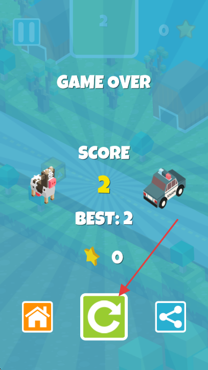3、游戏结束时,点击中间绿色重置按钮,重新挑战。