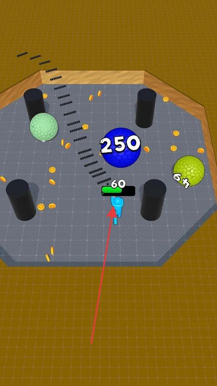 1、动态陷阱设计:竞技场中随机出现移动挡板、旋转齿轮等陷阱,增加小球轨迹变数,考验临场反应与射击策略。