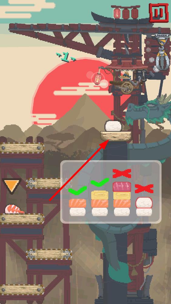 2、多元寿司收集:包含三文鱼、北极贝、蟹肉棒等12种像素风寿司,每种寿司有专属积分值,稀有寿司抓取难度更高。