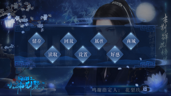3、用【储存】【读取】管理进度,【回放】重温情节;借【属性】【好感】了解状态,【商城】购道具,【设置】调参数,优化体验。
