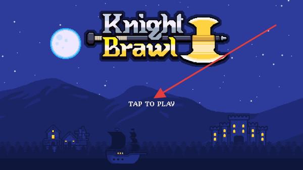 1、游戏启动界面,点击“TAP TO PLAY”开始,背景是月夜山景,呈现“Knight Brawl”标题,进入骑士格斗冒险。