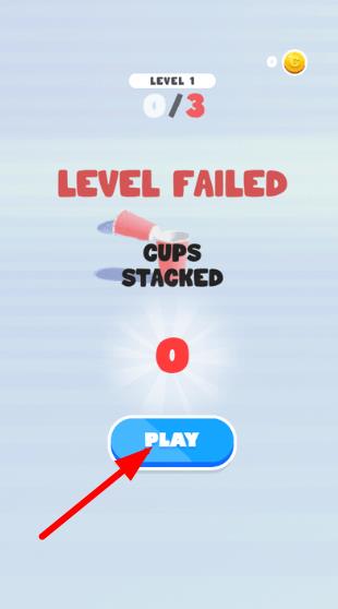 1、进入后点击【PLAY】屏幕释放杯子,从底座开始逐层向上叠加,初次尝试需适应杯子投放的力度与角度控制。