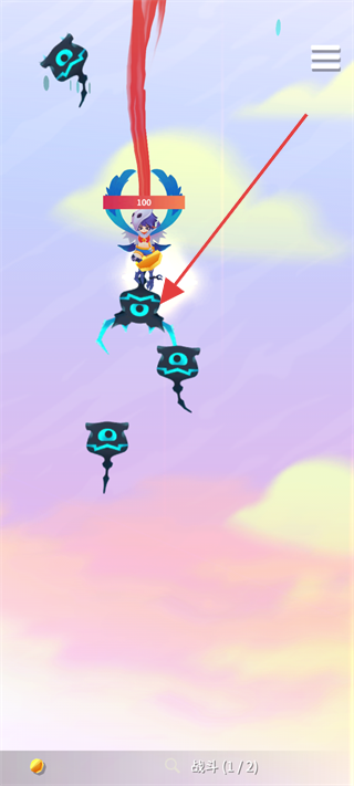 1、战斗时,操控角色攻击空中敌人(如黑色小怪),注意躲避弹幕,优先打击血条目标,推进战斗进程。