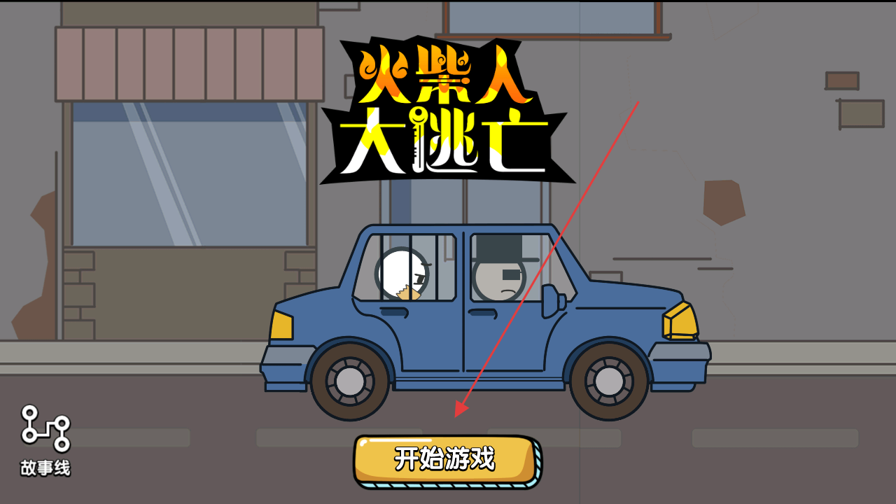 1、点击“开始游戏”,进入火柴人逃亡剧情,面对选择(如反抗/等待),决定逃亡走向。