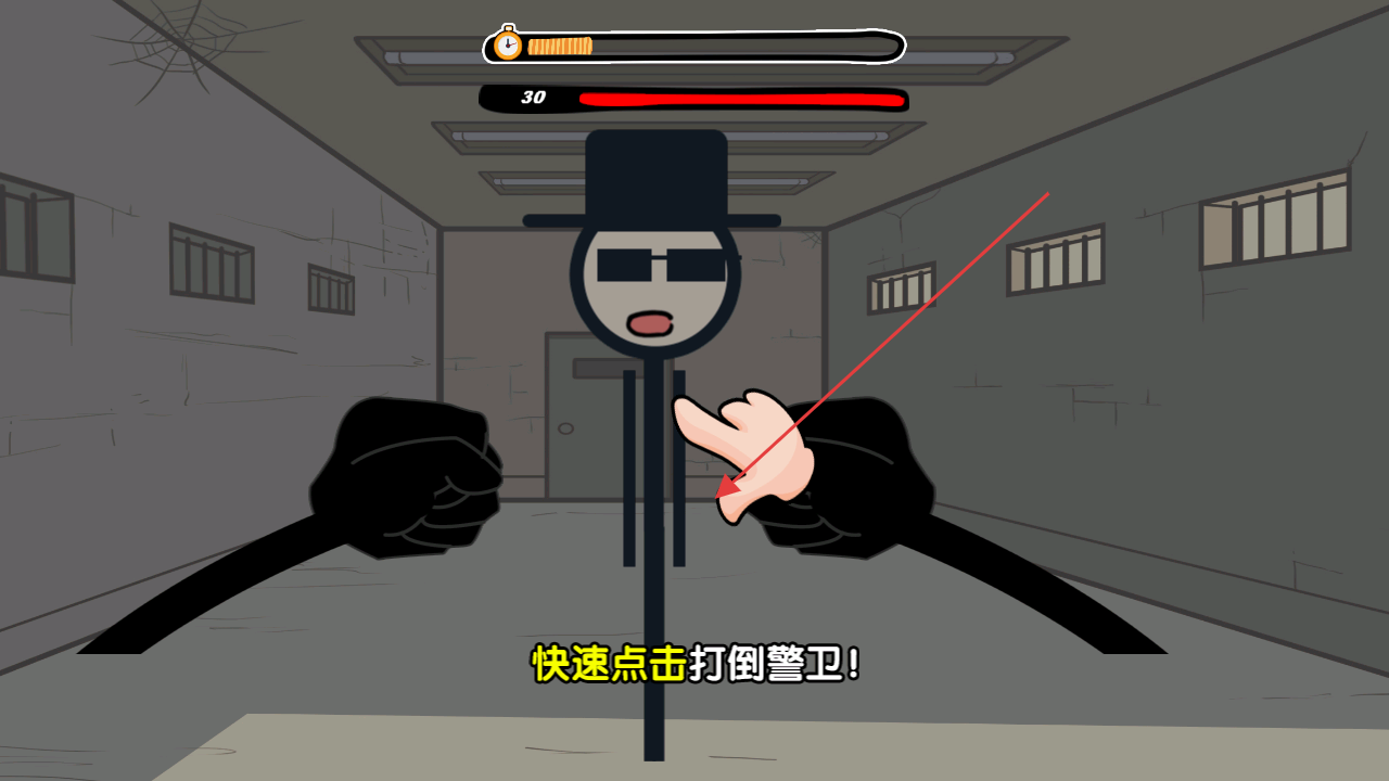 2、遇战斗场景(如打倒警卫),按提示快速点击操作,击败敌人推进逃亡流程。