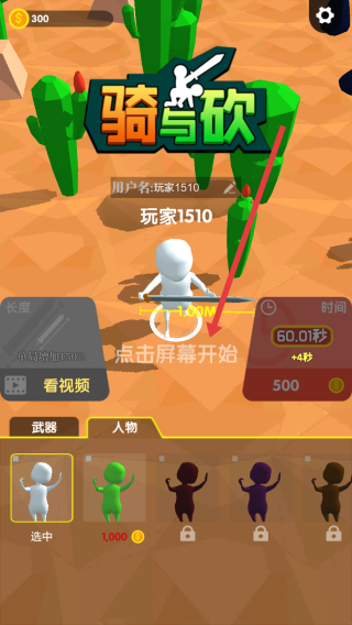 2、在开局页,点击屏幕,操控“玩家1510”角色,骑乘武器,准备进入“骑与砍”竞技对战。