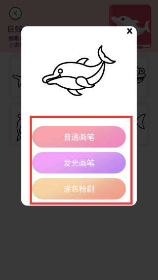 3、绘画时,从红色框选的工具中,按需选择【普通画笔】、【发光画笔】或【涂色粉刷】,辅助完成创作。