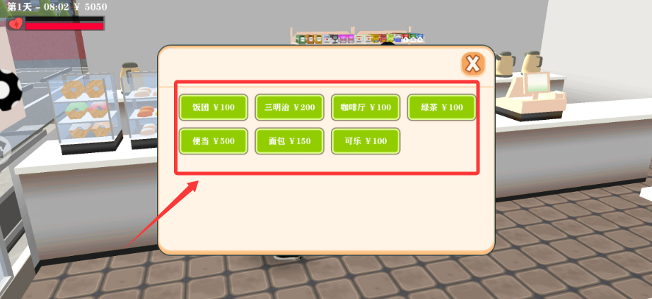 3、商店货架摆满各类食物饮料,消耗金币即可购买,及时恢复角色活力值继续冒险。