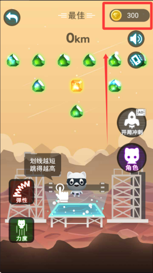 1、基础操作,通过短划实现精准高跳或长划完成远距离飞跃,下落过程中可二次划线延长滞空时间,操作时机的把握决定得分高低。