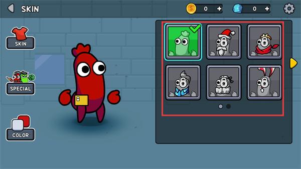 2、进入游戏后,点击SKIN,你可以在这里更换角色皮肤,享受全新的乐趣。