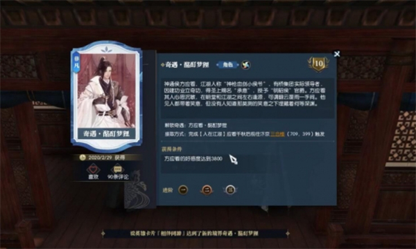 3、将花朵交付方承意后完成奇遇,获得160点好感度奖励与稀有背部挂件【醉月狸影】。