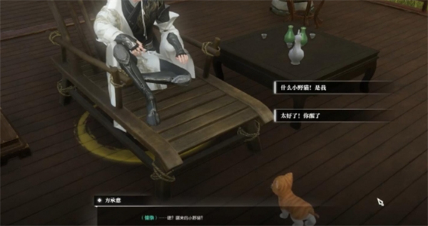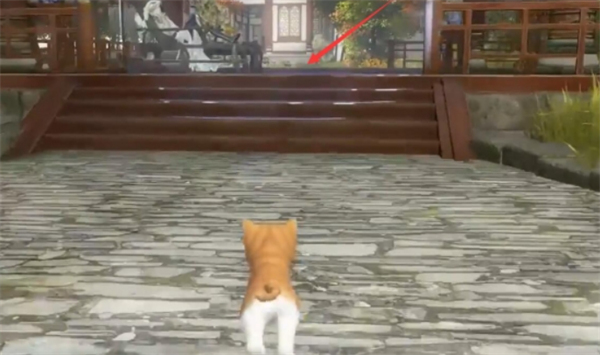 2、跟随自动寻路与方承意对话,操控猫咪进入亭子光圈触发梦境,前往府邸(315,184)寻找神秘花朵。