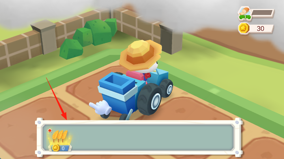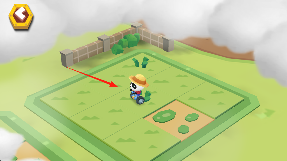 1、操控熊猫驾驶小车,在农田移动,到达指定区域,准备种植作物。