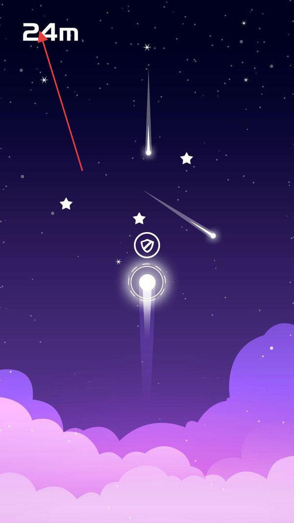 1、操控小球向上飞行:进入游戏后,用一根手指操控小球向上飞行,在飞行过程中躲避各种陨石和障碍物,保持小球的飞行状态,尽量飞的更远。