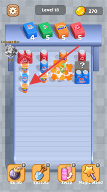 1、进入Level18等关卡,观察饮料/果汁方块分布,点击相同方块进行消除,达成目标。