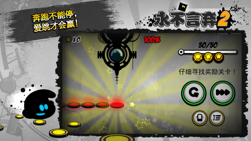 1、游戏采用极简的一键式操作设计,玩家只需跟随音乐节奏点击屏幕,就能控制小墨点完成各种高难度跳跃动作,操作简单易上手。