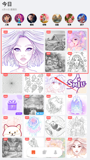 1、点击今日日期下方分类图标,选择喜欢的填色主题开始游戏。