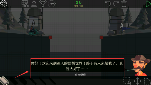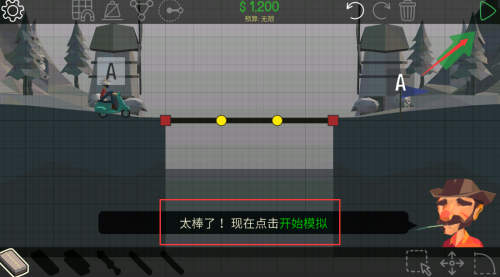 1、基础操作采用直观的拖拽设计,通过点击选择建材,滑动调整连接点,简单易上手但需要深入理解力学原理才能打造完美桥梁。