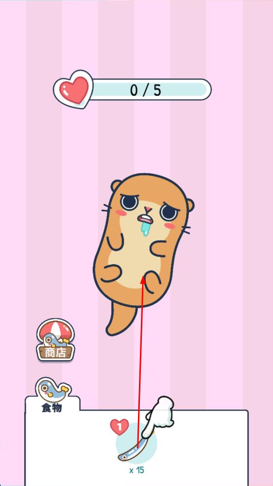 1、进入otter ocean,映入眼帘的是可爱的水獭,先从基础的喂养开始,点击场景中的喂食工具,给毛茸茸的水獭们投喂食物。