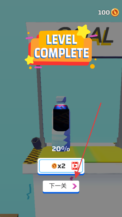 3、当界面显示“LEVEL COMPLETE”(关卡完成)时,点击下方标有“下一关”的白色按钮,进入后续关卡挑战。