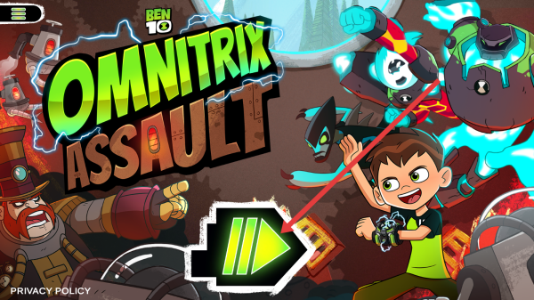 1、进入游戏首步,点击主界面绿色箭头按钮,正式开启Ben10:-Omnitrix-Assault冒险,准备迎接后续挑战。