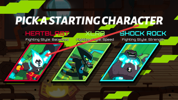 2、选初始角色时,依据战斗风格偏好,若要平衡型选HEATBLAST,追求速度选XLR8,看重力量选SHOCK-ROCK,助力开局战斗。