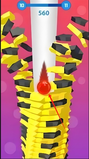 2、策略规划技巧:提前观察平台旋转规律与障碍分布,预判小球运动轨迹,合理规划撞击顺序,避免因误撞错误颜色障碍导致游戏失败。