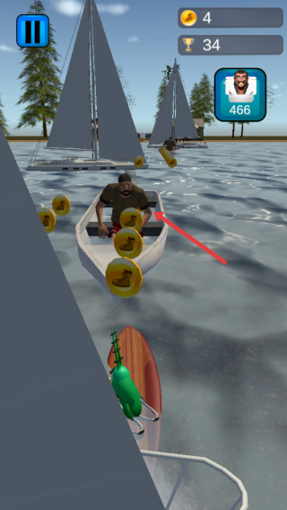 3、目标挑战:靠近船上目标(人物),完成互动,积累奖杯数,推进关卡。