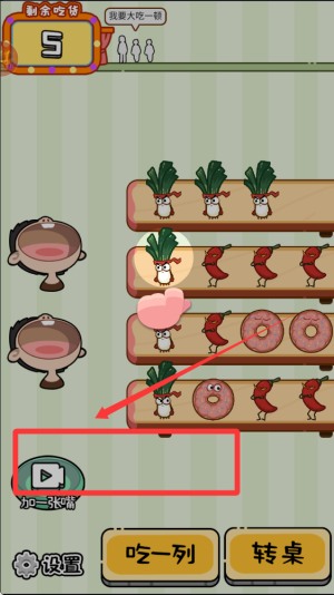 1、基础机制,通过点击三个相同食物进行消除,成功喂饱吃货角色即可得分,操作简单易上手。